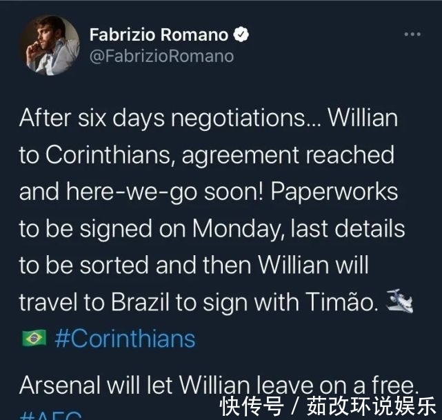著名转会记者罗马诺确认,威廉主动向阿森纳提出解约,经过6天谈判后,巴甲豪门科林蒂安已经与威廉就加盟达成协议。here we go!威廉将以自由身加盟科林蒂安,相关文书工作将在下周一完成。