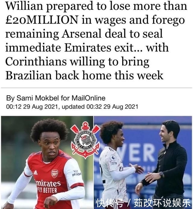 为了离开阿森纳,威廉自愿放弃了2000万英镑工资。《天空体育》记者Kaveh Solhekol表示,威廉的决定让阿森纳高层感到惊讶。在新东家科林蒂安,威廉年薪只有300万英镑,比枪手收入少了70%。